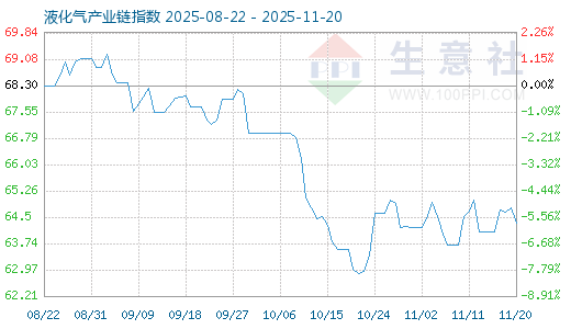 12月6日生意社液化气产业链指数为64.34,与昨日持平,较周期内最高点121.85点(2022-03-09)下降了47.20%,较2020年04月29日最低点36.05点上涨了78.47%。(注:周期指至今)
