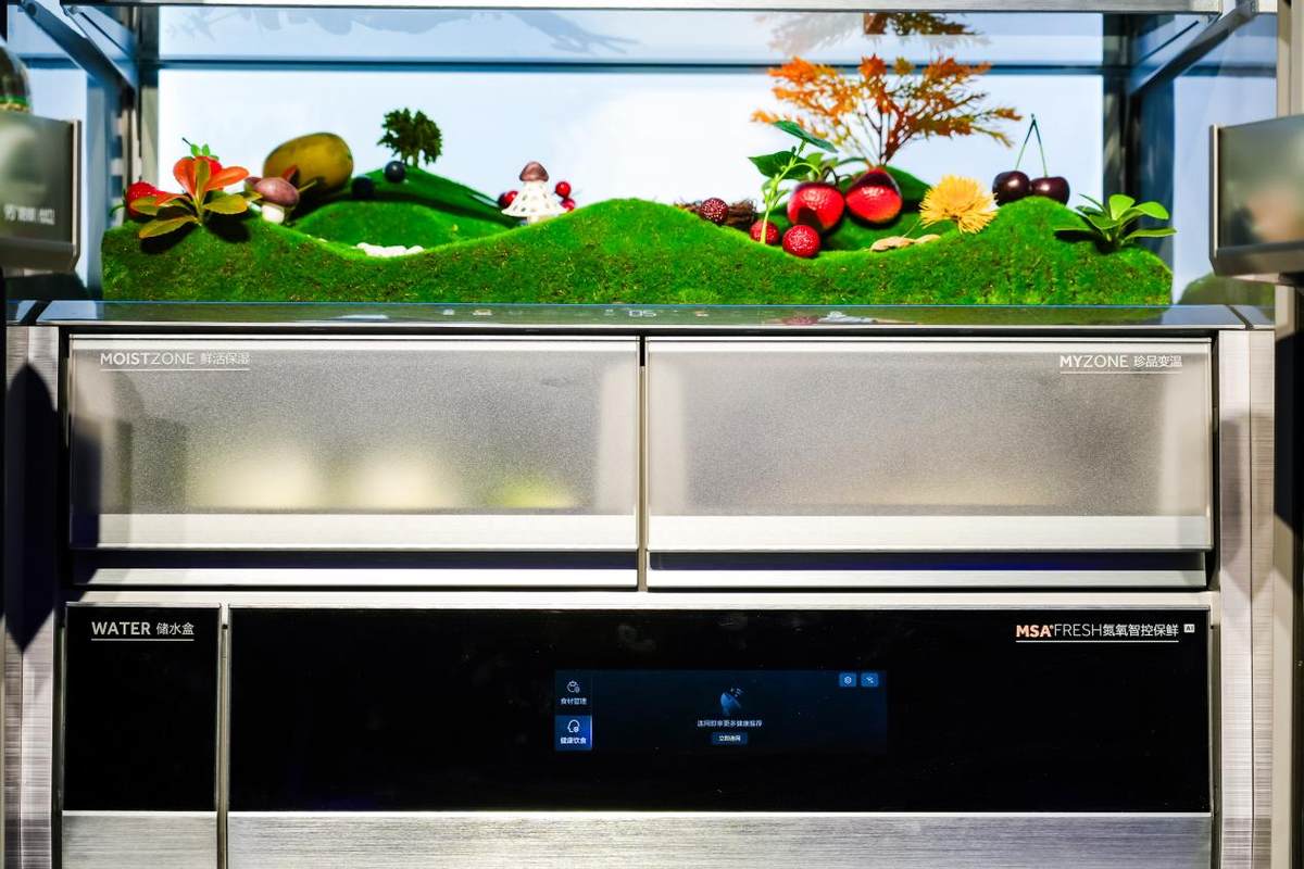 用户对冰箱的所有想象,卡萨帝都在努力满足。卡萨帝高定平嵌·融系列冰箱搭载了行业唯一的AI氮氧智控保鲜科技,能够延缓果蔬细胞氧化,新鲜果蔬存放7天还像刚摘的一样,VC、叶酸、花青素等关键营养留存率也超过99%。底置循环风幕保鲜科技还能为深海鱼虾、澳洲牛排等锁住水分和营养,解冻后依然鲜嫩多汁。