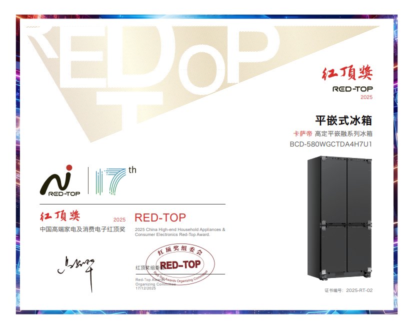 就在行业纷纷跟进之时,卡萨帝冰箱再次向前迈进,推出了更高阶的高定版本,并获得了红顶奖的认可。12月17日,第17届红顶奖揭晓,卡萨帝冰箱高定平嵌·融系列斩获平嵌式冰箱品类大奖。这也是卡萨帝冰箱全域ToC战略的又一落地成果。从率先开创平嵌风口,到如今把“高定”理念融入冰箱,卡萨帝把用户对冰箱的每一份期待都落到了实处。