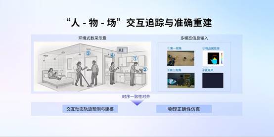 在数据处理环节,通过时序一致性对齐、交互动态轨迹预测建模与物理正确性仿真校正,将采集到的“人—物—场”信息转化为可直接用于模型训练的动态场景数据,实现从数据采集到应用的全链路打通。