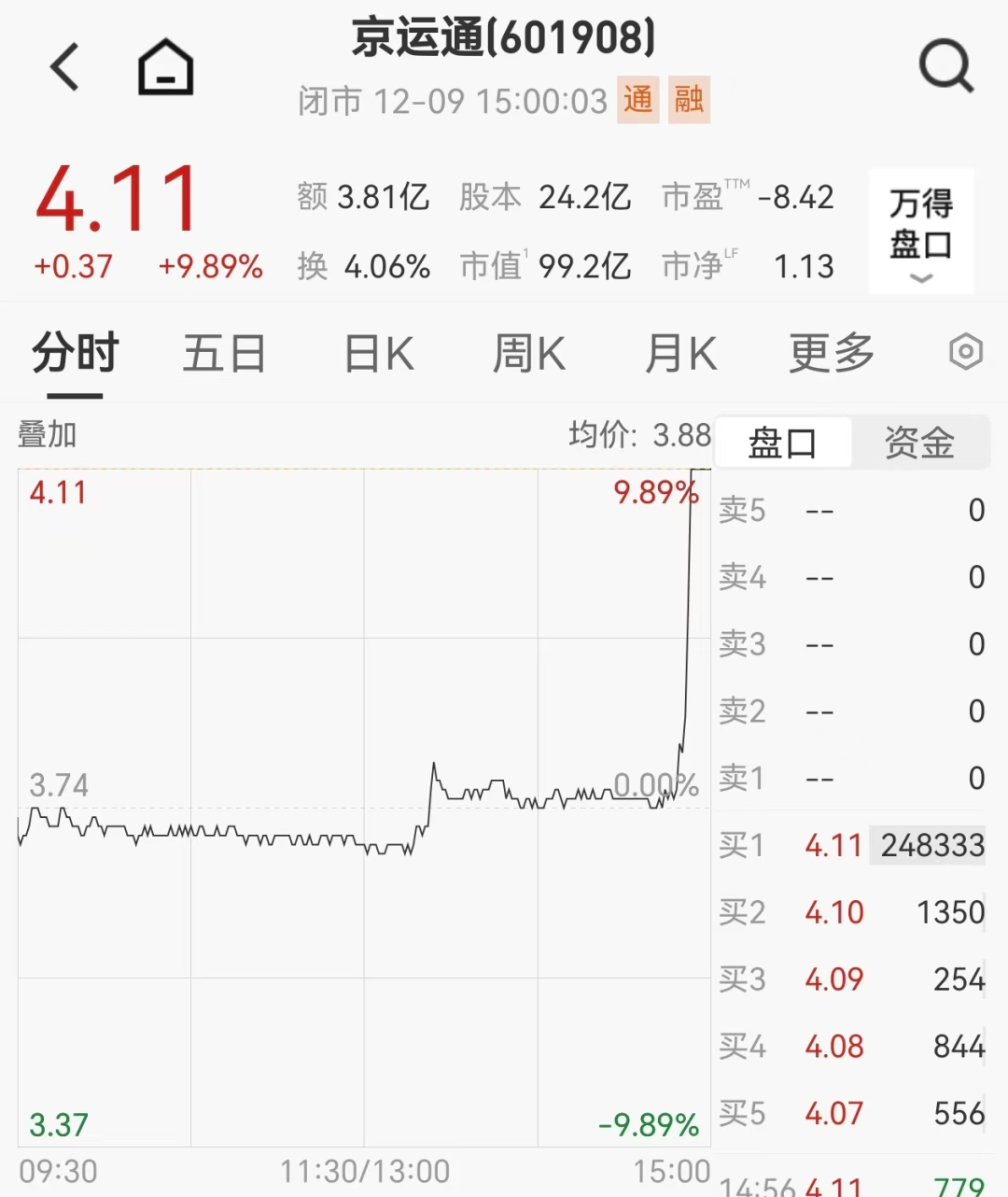京运通(601908)(601908.SH)垂直涨停,最后10分钟成交超昨日全天成交;航天机电(600151)(600151.SH)也强势涨停,走出5日4板,股价昨日已创10年新高;帝科股份(300842)(300842.SZ)、清源股份(603628)(603628.SH)等午后均异动拉升,涨幅居前。