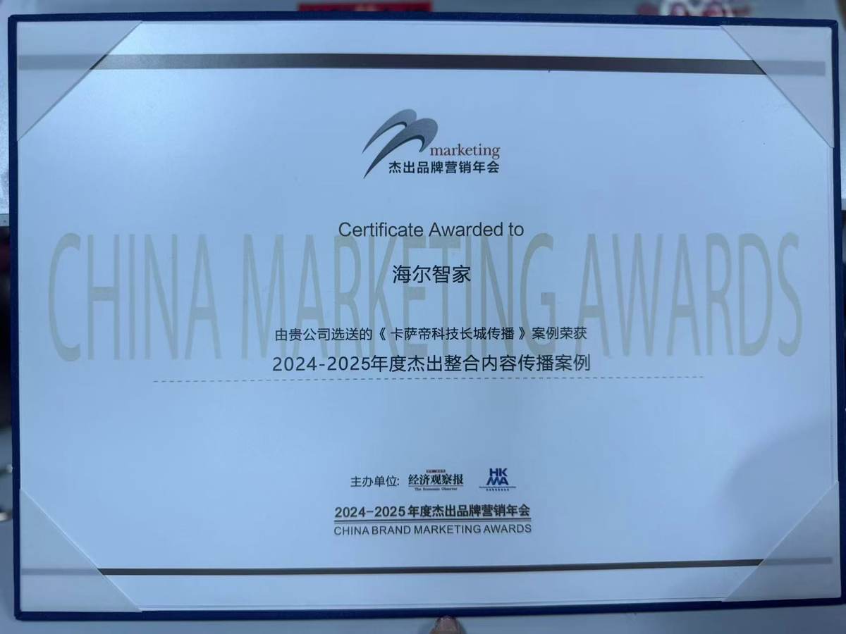 12月10日,2024-2025年度杰出品牌营销年会在北京举行。《卡萨帝科技长城传播》案例摘得“年度杰出整合内容传播案例”大奖,成为高端品牌公关传播的标杆之作。该案例以“长城”为叙事主线,不仅深刻诠释了高端家电的匠心精神,更开启了一场科技与文化的深度对话,成为卡萨帝全面ToC战略落地的重要里程碑。