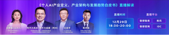 此外,联想还联合IDC率先发布《个人AI产业定义、产业架构与发展趋势白皮书》。在产业变革的大时代里,你可以在其中找到关于个人AI产业发展、大模型厂商的未来、智能体的个性化趋势等一些行业热点问题的答案,登录联想官网即可查看报告。