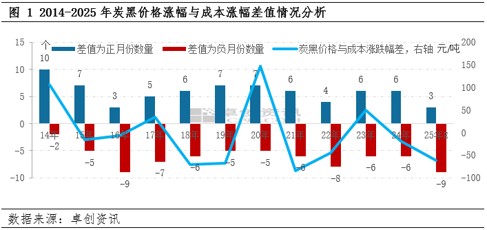 2025年炭黑市场现状:炭黑价格与原料油涨跌幅基本脱钩,“超涨”过渡到“超跌”,利润水平呈现“高开低走”