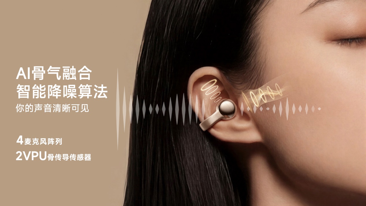 在通话场景中,MOVA TPEAK Clip Pro 采用AI骨气融合,智能降噪算法,配备 4 麦克风阵列与 2 颗 VPU 骨传导传感器。高信噪比麦克风精准采集空气中的人声,VPU传感器通过骨振动同步获取语音信息,配合深度神经网络通话降噪与抗风噪算法,实时分离环境噪音并进行人声增强,实现双向清晰通话。整体音质与音量提升约 30%,在最高 92dB 声压下依然清晰不刺耳。