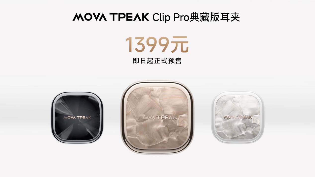 MOVA TPEAK即日起将面向全球渠道正式预售,典藏版 Clip Pro售价1399元,雅致版 Clip售价1199元。