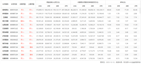 行业重点公司最新盈利预测综合值