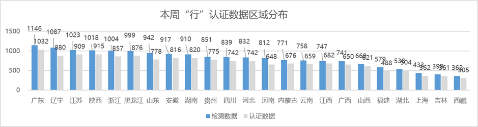 2025年12月第二周上报“行”认证统计数据18,337台,本周上报量较上周微降约0.4%。其中基于国家标准检测符合“行”认证车辆数据为16,098台(占比约87.6%,较上周略增0.1%),符合团标数据为10,703台(占比约58.2%,较上周微降0.2%),较2024年同期相比增加约4.3%,整体车况质量较上周略好。