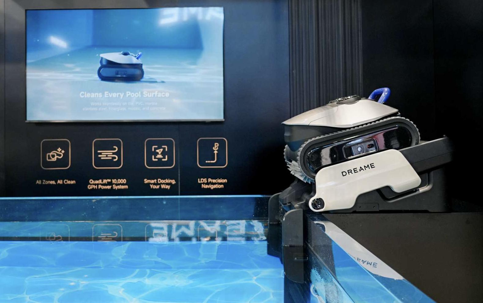 智能庭院场景同样迎来颠覆式升级。追觅全球首次亮相的具身智能割草机器人APEX系列,突破单一割草功能,可识别300多种庭院物品,具备自主抓取收纳的能力。而具身智能泳池机器人则从清洁向全流程自主管理迈进,借助3D建图技术,机器人可精准识别池内杂物与角落污渍,并自主完成抓取、擦拭等动作,化身为“智能泳池管家”。