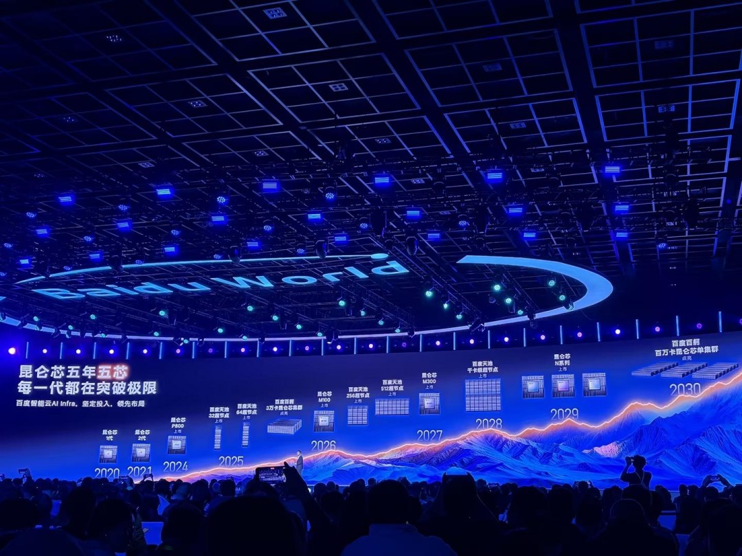 同时,百度还公布了昆仑芯的未来五年路线图,百度天池千卡级超节点将于2028年上市,昆仑芯N系列将于2029年上市,百度百舸百万卡昆仑芯单集群将于2030年点亮。