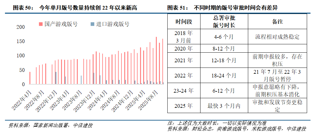 该行认为供给将在2026年继续改善。回顾2025年爆款新游戏(三角洲,超自然,杖剑),其版号大多在2024年及之前获得,2025年1~10月版号数量持续提升,这些版号有望在2026年及后续持续释放。