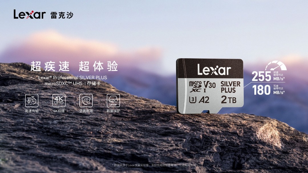 这是全球首款 2TB 容量的 UHS-I microSD 卡 。在指甲盖大小的空间里塞进 2TB 数据已经足够惊人,更夸张的是它的速度:读取高达 255MB/s,写入高达 180MB/s 。这已经摸到了 UHS-I 接口的物理极限,甚至超越了许多入门级 SATA SSD。对于使用大疆无人机或运动相机的创作者来说,这意味着可以肆无忌惮地录制 4K 60帧甚至更高规格的素材,彻底告别换卡的烦恼。