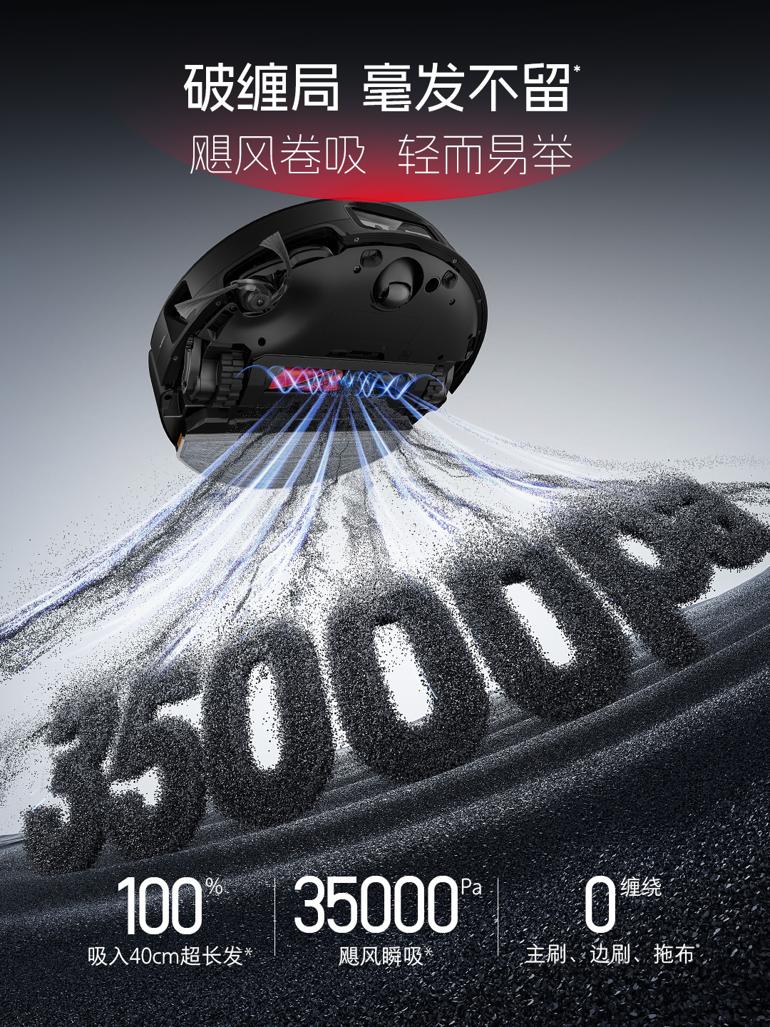 在扫地与防缠绕方面,G30S Pro搭载石头首创0缠清洁系统,配合 35000Pa 飓风吸力。双悬臂主刷采用胶毛一体结构与 45° V型螺旋设计,能将最长 40cm 的毛发瞬间吸入并利用差速撕裂技术防止缠绕。同时,通过可伸缩四区双震拖布与动态机械臂的配合,实现了对墙角、边缘区域的 100% 覆盖。