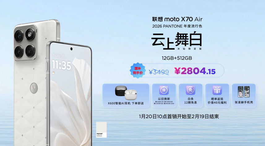 2026年1月7日,联想宣布moto X70 Air Pro将于1月20日正式发布,该新品已在多个主流