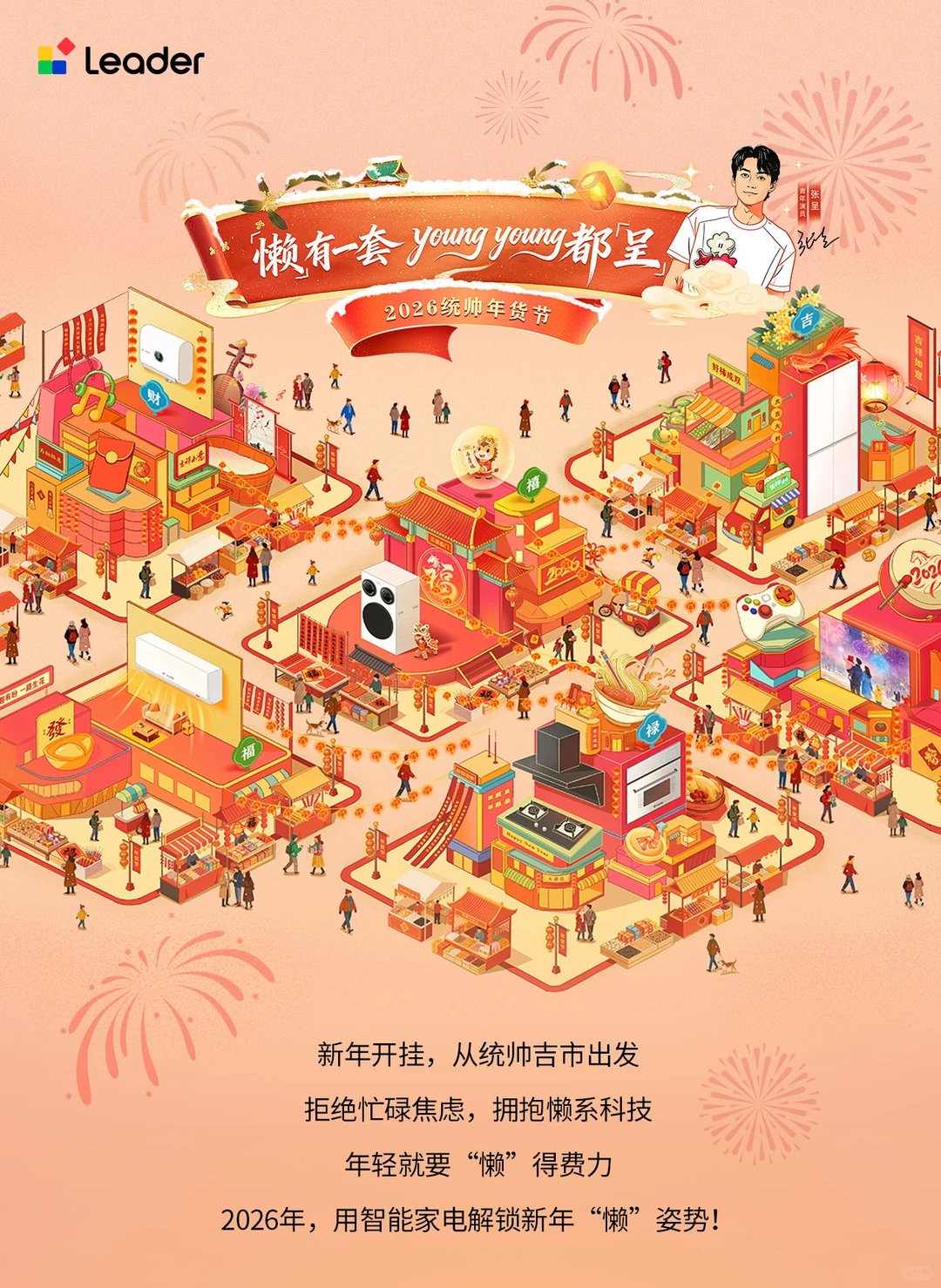 1月1日,“YoungYoung都好 马上‘呈’功”2026统帅开挂年货节在京东、天猫等平台同步启动。这次活动,统帅邀请青年演员张呈担任“吉运心愿官”,不仅共同解锁了懒人套系的开挂功能,更为年轻人量身定制了“精致懒”的生活方式。而这背后,正是统帅持续与用户共创,打造爆款战略的生动实践。