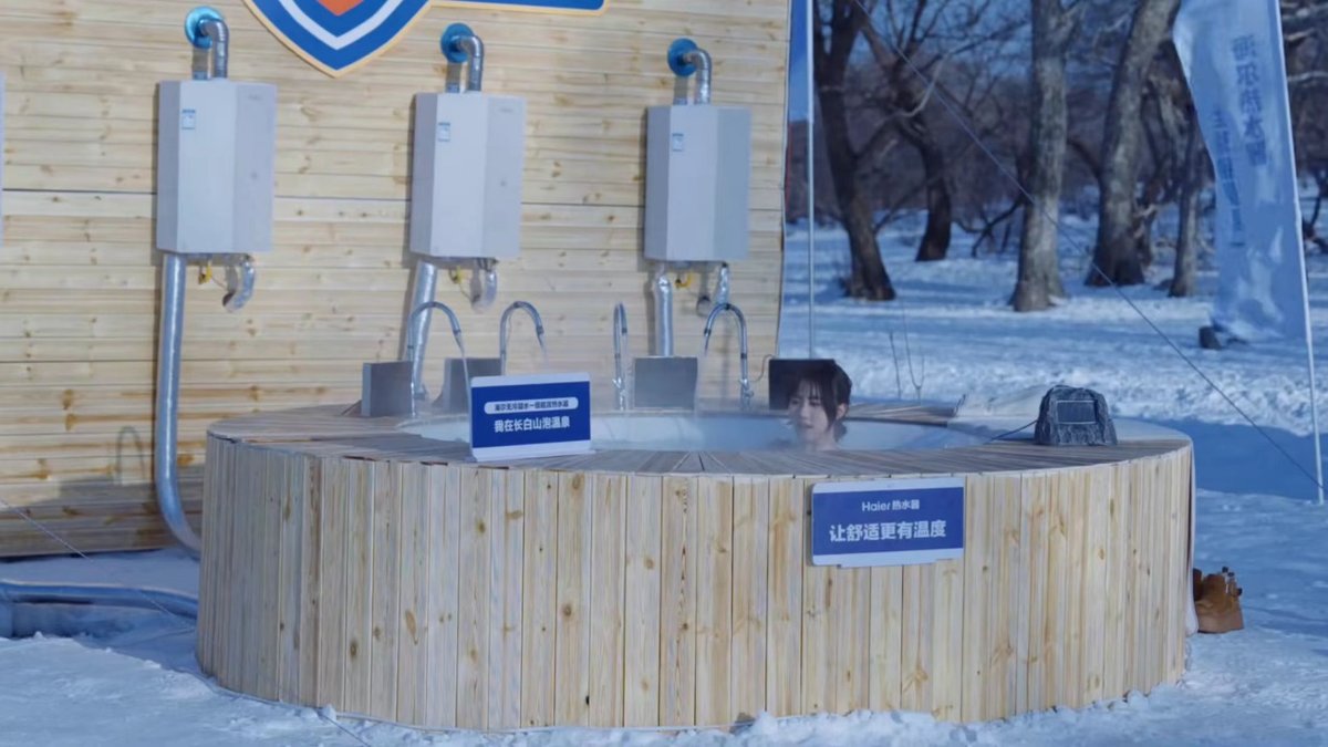 海尔无冷凝水热水器在-30℃长白山造出户外温泉