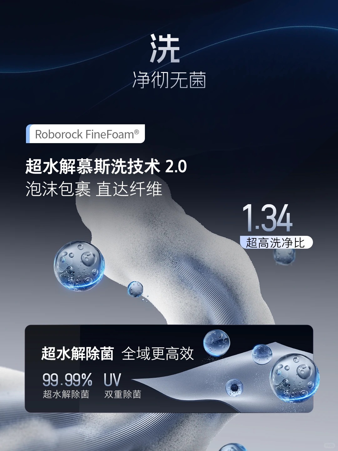 其搭载行业领先的超水解系统,通过创新技术,在高效去除污渍的同时,能实现99.99%的广谱除菌率,并能有效呵护衣物色彩,减少洗涤带来的褪色问题。配合其慕斯洗2.0技术,生成的绵密泡沫能更深层、更温和地清洁衣物纤维。最终,Z1 Ultra实现了高达1.34的行业领先洗净比,较国家标准提升约30%,并获得国际羊毛局洗涤绿标认证,从根源确保洗涤效果的专业与可靠。