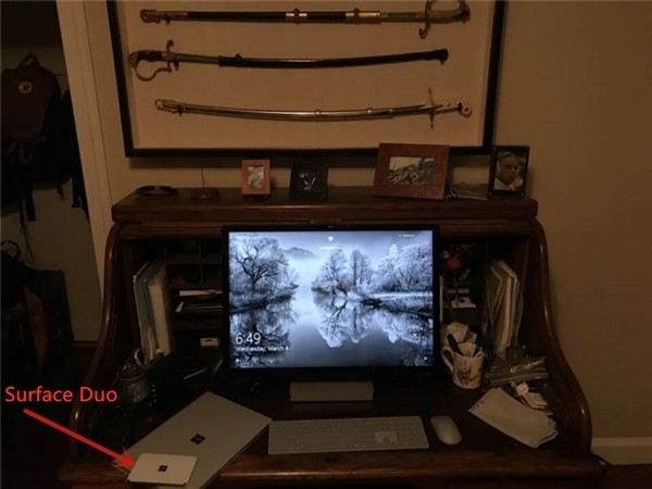 目前全球都笼罩在新冠肺炎的阴影下,大部分企业纷纷实行在家远程办公的政策。近日微软高级主管Frank Shaw发布了一张自己在家办公的桌面照片,结果眼尖的网友们发现了照片中即将发布的微软折叠手机,新款Surface Duo的身影。