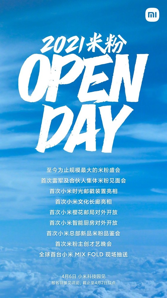值得一提的是,在 2021 米粉盛会的宣传海报上列出了多个「首次」,非常吸引眼球。比如:至今为止规模最大的米粉盛会;首次雷军及合伙人集体米粉见面会;首次小米时光邮戳装置亮相;首次小米文化长廊亮相首次小米樱花邮局对外开放;首次小米智能厨房对外开放;首次小米总部新品米粉品鉴会;首次米粉主创才艺晚会全球。此外,该活动还会进行首台小米 MIX FOLD 的现场抽送。