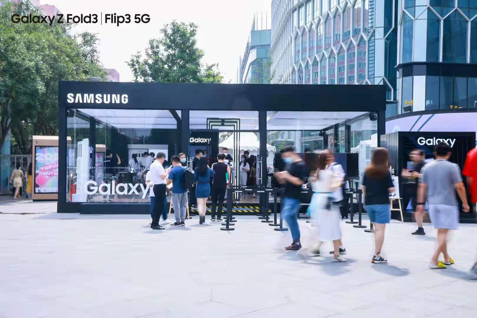 9 月 3 日消息,三星新一代折叠屏产品 Galaxy Z Fold3 5G 与 Galaxy Z Flip3 5G 正式在国内发布。与此同时,三星专为本次新品打造的 20 余家三星全新折叠屏手机快闪店,也已陆续在上海、广州、北京、杭州、成都、重庆等全国 10 余座城市开业。 9 月 3 日,三星全新折叠屏手机快闪店「空降」北京三里屯通盈中心北广场,除此之外,另两家三星全新折叠屏手机快闪店也在 8 月 30 日,于上海新天地时尚户外广场和广州天河城首层中庭营业。 在各地三星全新折叠屏手机快闪店中,消费者不但能够体验新品,还可通过工作人员细致地讲解,更深入地了解三星的产品和理念。很快,三星全新折叠屏手机快闪店将落地杭州银泰 IN77 户外广场、成都春熙路步行街与重庆解放碑步行街等各城商圈。
