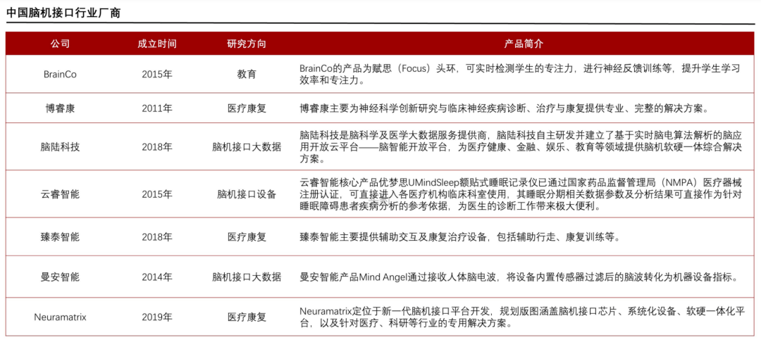 目前,中国入局脑机接口产业的企业并不算多,也尚未跑出独角兽企业。他们大多成立于2015年前后,聚焦医疗健康领域的应用。