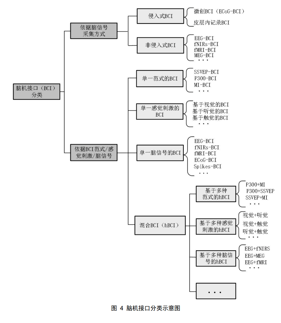 在这一过程中,如下图所示,脑机接口在技术层面也演化出了不同的分类方法,背后的原理基础都是神经科学。