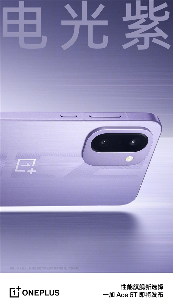 其他方面,根据此前曝光的消息,全新的一加Ace 6T将采用一块6.7英寸1.5K OLED直屏,支持165Hz超高刷新率,兼顾流畅视觉与功耗控制。硬件上除了将首发搭载高通骁龙8 Gen5移动平台外,还将提供12GB/16GB LPDDR5X Ultra内存与256GB/512GB/1TB UFS 4.1存储组合,构成“性能铁三角”。影像上将延续竖排大底双摄的布局,两颗镜头分别为5000万像素主摄(支持OIS)和800万像素超广角镜头。不仅如此,该机的电池容量超过8000mAh,并支持100W有线闪充,是唯一一款实现8000mAh+100W闪充的性能旗舰。此外,该机将提供闪速黑、掠影绿、电光紫三款配色,预装基于Android 16的ColorOS 16操作系统。