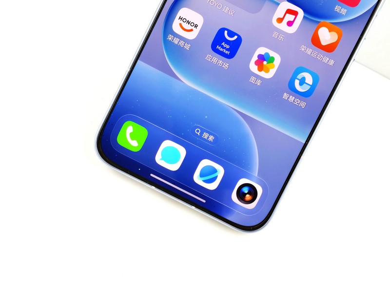 在配色方面,荣耀500 Pro提供了四款水晶灵感配色:海蓝宝、星光粉、月光银和曜石黑,每种配色都蕴含着独特的寓意和设计灵感,不仅满足了不同用户的审美需求,更让手机成为了一种时尚配饰。此次笔者拿到的是其中的海蓝宝配色版本。这款“海蓝宝”智慧水晶配色灵感源自深海与海蓝宝石的能量共振,通透蓝调背板在不同光线下展现出独特的光泽和质感。