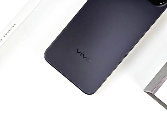 如果说屏幕是理性的一面,那么背部就是vivo S50系列感性表达的舞台。此次我们拿到的是vivo S50 Pro mini的“深空黑”配色版本,采用了缎面柔光玻璃,触感如丝缎般顺滑,且不易沾染指纹——即便刚涂完护手霜拿起手机,也不会留下油腻痕迹。