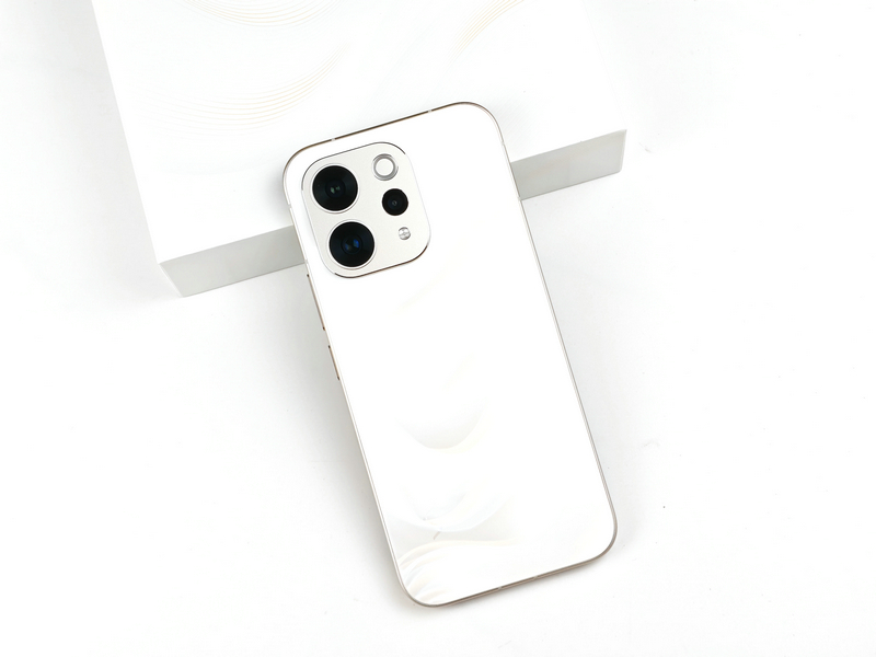 如果说屏幕是理性的一面,那么背部就是vivo S50感性表达的舞台。我们手中的这台“告白”配色版本,堪称整场设计语言的点睛之笔。值得一提的是,“告白”并非简单的白色,而是白里透金的复合色调,灵感源自“冬日暖阳照耀在雪地上”的治愈意象。并且采用的是缎面柔光玻璃,触感如丝缎般顺滑,且不易沾染指纹——即便刚涂完护手霜拿起手机,也不会留下油腻痕迹。