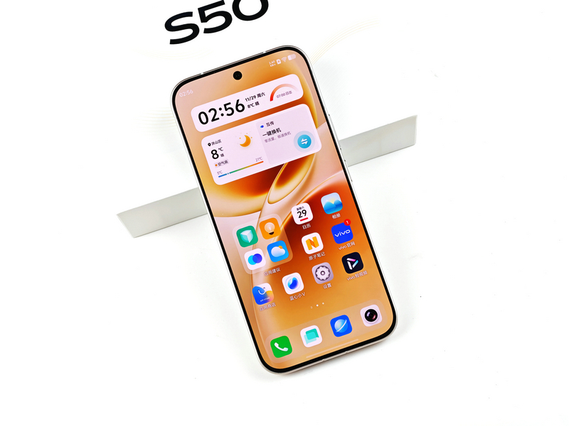 至于手感方面,vivo S50的机身尺寸为157.52×74.33×7.59mm,重量197g。虽然不算极致轻薄,但得益于6.59英寸的“黄金尺寸”和超大圆润R角,握持感异常舒适。无论横握打游戏还是单手刷信息流,手掌都能自然贴合,毫无硌手感。并且更巧妙的是其1:1精细配重设计——内部元器件布局经过人因工程优化,整机重心恰好落在掌心中央。这意味着长时间使用时手腕不易疲劳,即便是小手用户也能轻松掌控。配合中框的微弧处理,手机甚至能稳稳立在桌面上,实用性加分。