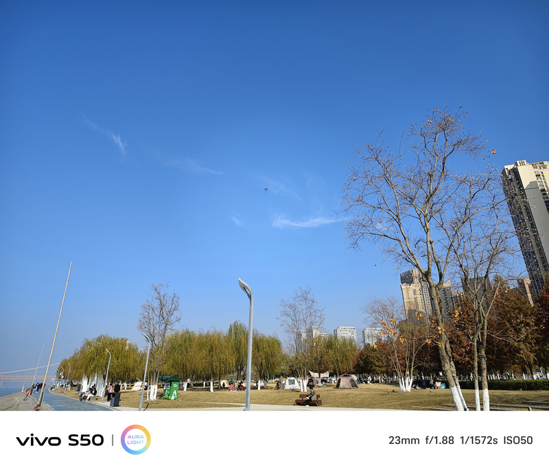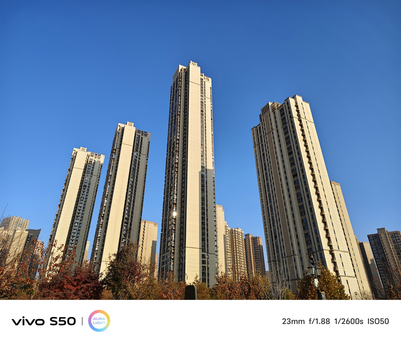 在日光充足环境下,vivo S50的成像风格偏向自然写实,不过分提亮或饱和。主摄解析力出色,建筑纹理、树叶脉络等细节清晰可见。得益于自研的原像引擎,色彩还原准确,尤其在复杂光源下(如商场橱窗、逆光街道)仍能保持白平衡稳定。