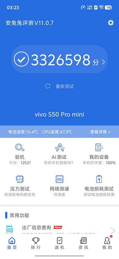 在安兔兔V10测试中,S50 Pro mini跑分稳定在332万分左右,属于旗舰第一梯队。日常使用中,无论是多任务切换、应用秒开,还是大型文件传输,都丝滑流畅,毫无卡顿。