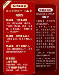 为进一步推进海南自由贸易港建设,满足消费者多元化购物需求,10月17日,财政部、海关总署、税务总局联合印发公告,调整海南离岛旅客免税购物政策,并定于11月1日起实施。当前,