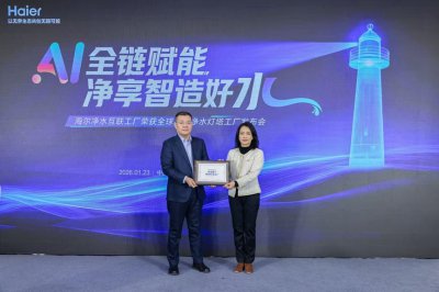继海尔青岛净水互联工厂获评行业唯一灯塔工厂,1月23日海尔净水灯塔工厂发布会上,该工厂第1000万台净水产品正式下线。这不仅是海尔净水产能与品质的双重印证,更标志着其以用户