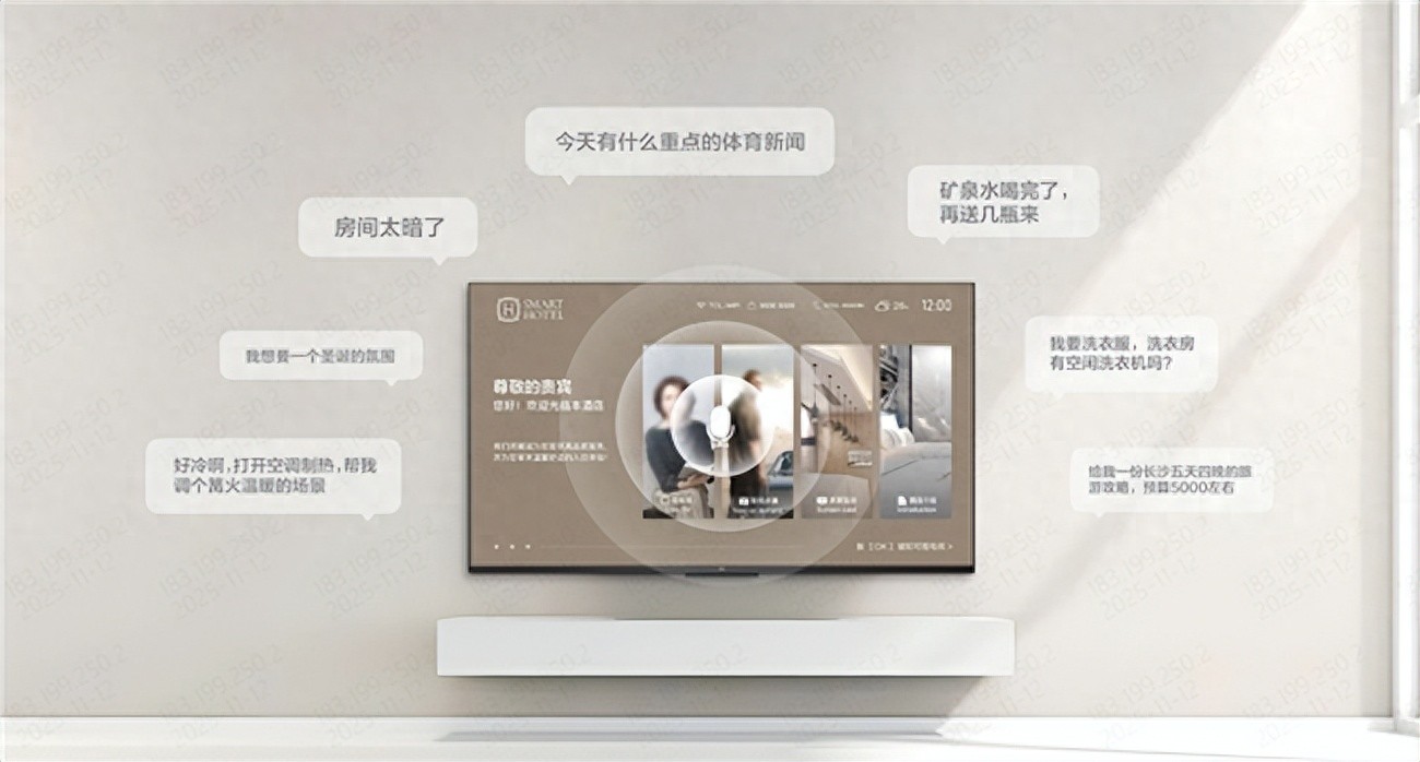 面对这一行业现状,TCL智慧酒店解决方案以AI语音大模型为核心,整合多项智能服务,致力于为酒店业构建更高效、更人性化的旅居体验。该系统实现了“开口即得”的智能服务闭环,具备具备泛语言理解能力,拥有接近真人交流的交互能力。无论是“把灯光调暗些”这样的模糊表达,还是“关灯、开空调、拉上窗帘”这样的复合指令,系统都能准确理解并执行,无需重复唤醒,大幅降低了住客操作门槛。