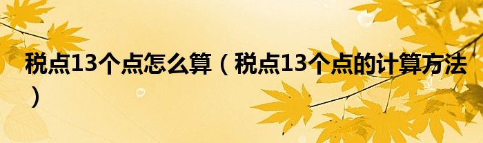 税点13个点怎么算,税点13个点的计算方法很多人还不知道,现在让我们一起来看看吧!