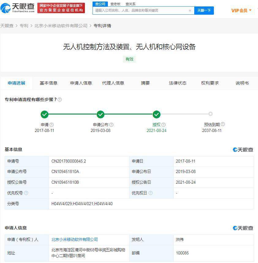 小米无人机控制相关专利获授权,可对接入核心网的设备有效管理