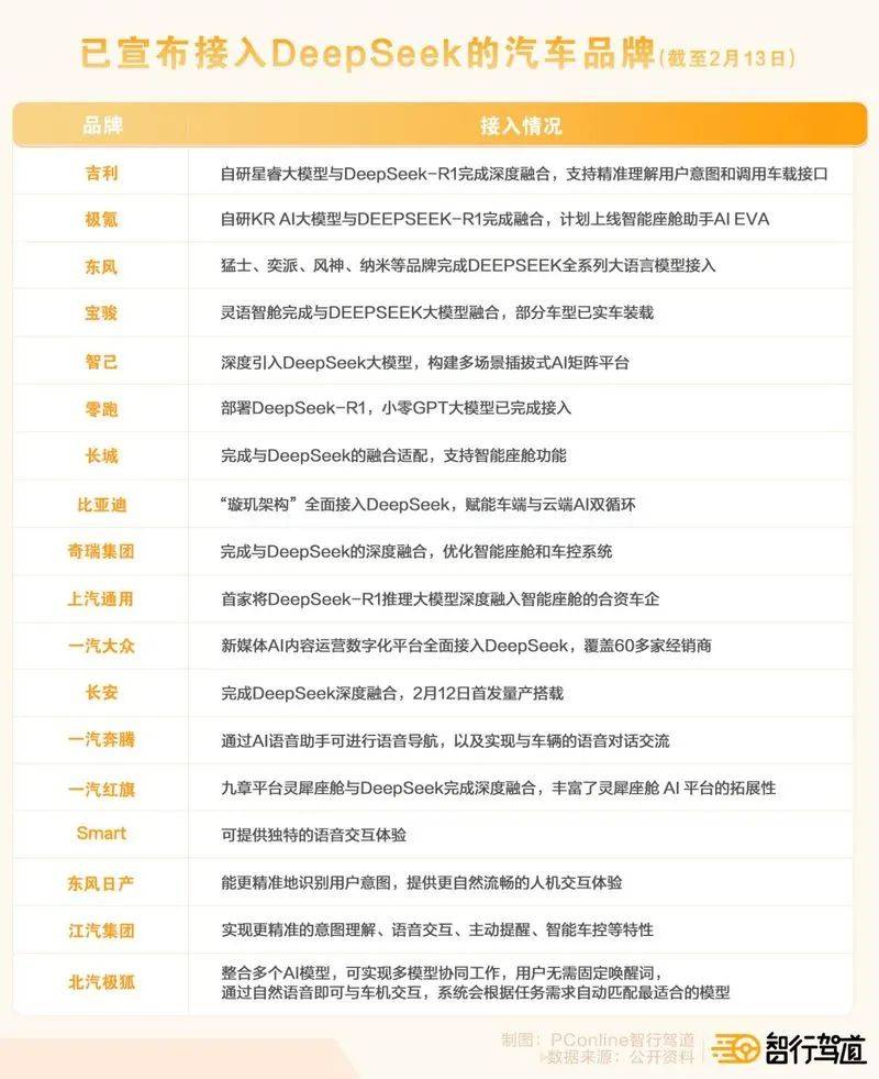 总的来说,DeepSeek“低成本技术普惠+功能体验升级”的组合拳,为车企提供了智能化转型的“捷径”,短期内显著缓解了车企们的智能化焦虑。