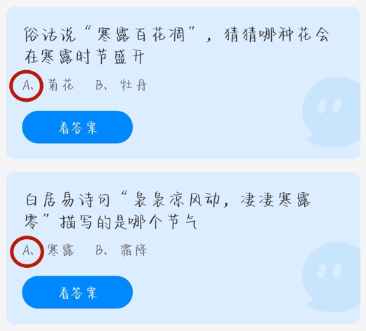 问题1:俗话说“寒露百花凋”,猜猜哪种花会在寒露时节盛开