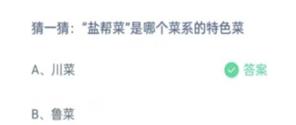 原标题:“盐帮菜”是哪个菜系的特色菜?蚂蚁庄园12.3答案抢先知
