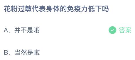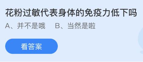 花粉过敏代表身体的免疫力低下吗?蚂蚁庄园7.23答案呈上