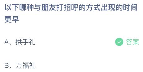 以下哪种与朋友打招呼的方式出现的时间更早?蚂蚁庄园7.31答案大放送