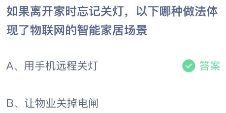 如果离开家时忘记关灯以下哪种做法体现了物联网的智能家居场景?蚂蚁庄园
