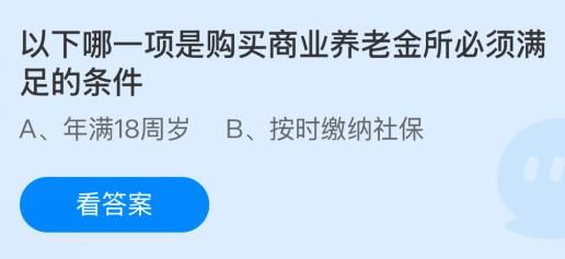 以下哪一项是购买商业养老金所必须满足的条件?蚂蚁庄园1.25答案来了